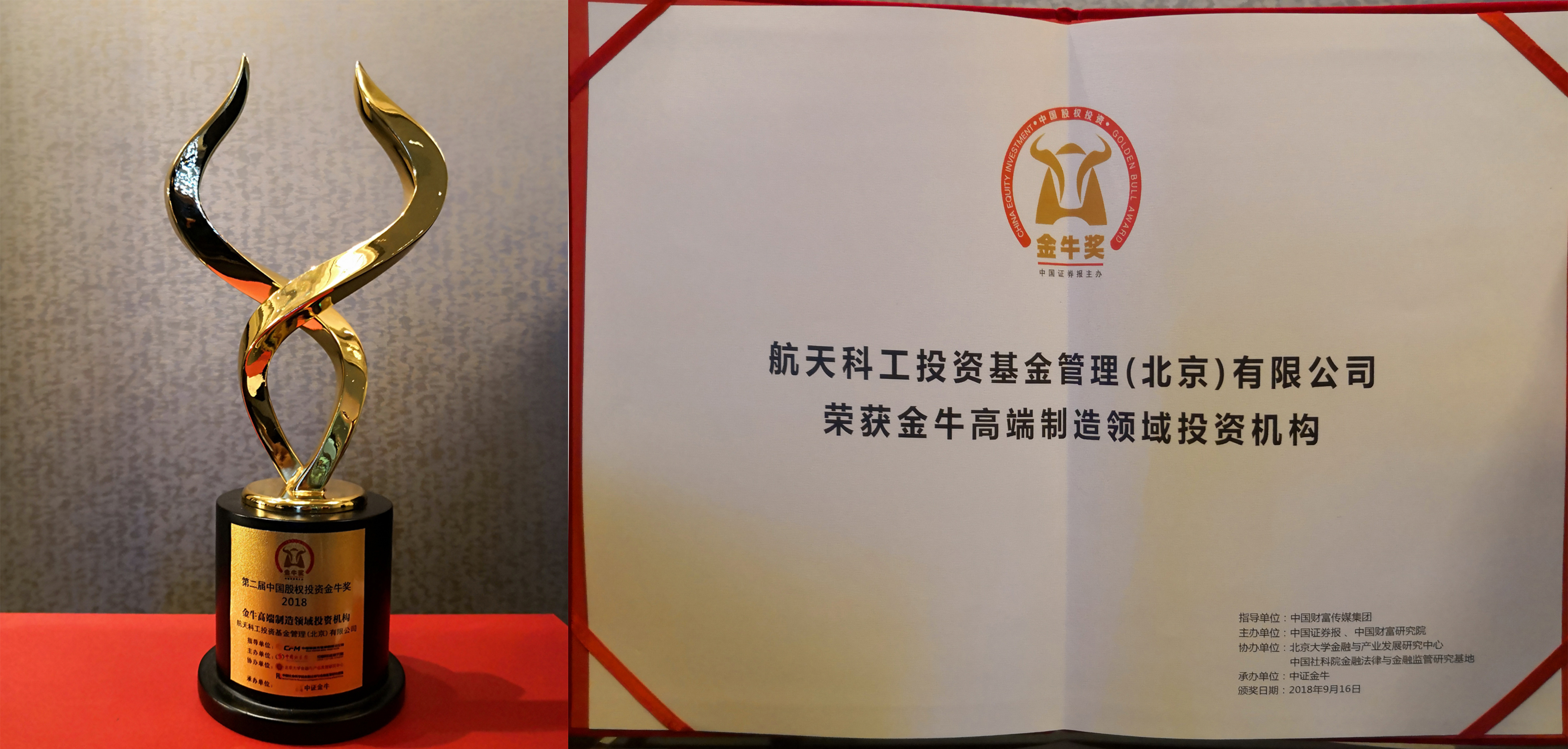 11月17日,由中国财富传媒集团指导,中国证券报、中国财富研究院联合主办的“2018中国股权投资高峰论坛暨第二届中国股权投资金牛奖颁奖典礼”在广东省佛山市隆重举行。资产公司所属北京基金公司荣获“金牛高端制造领域投资机构”奖项。