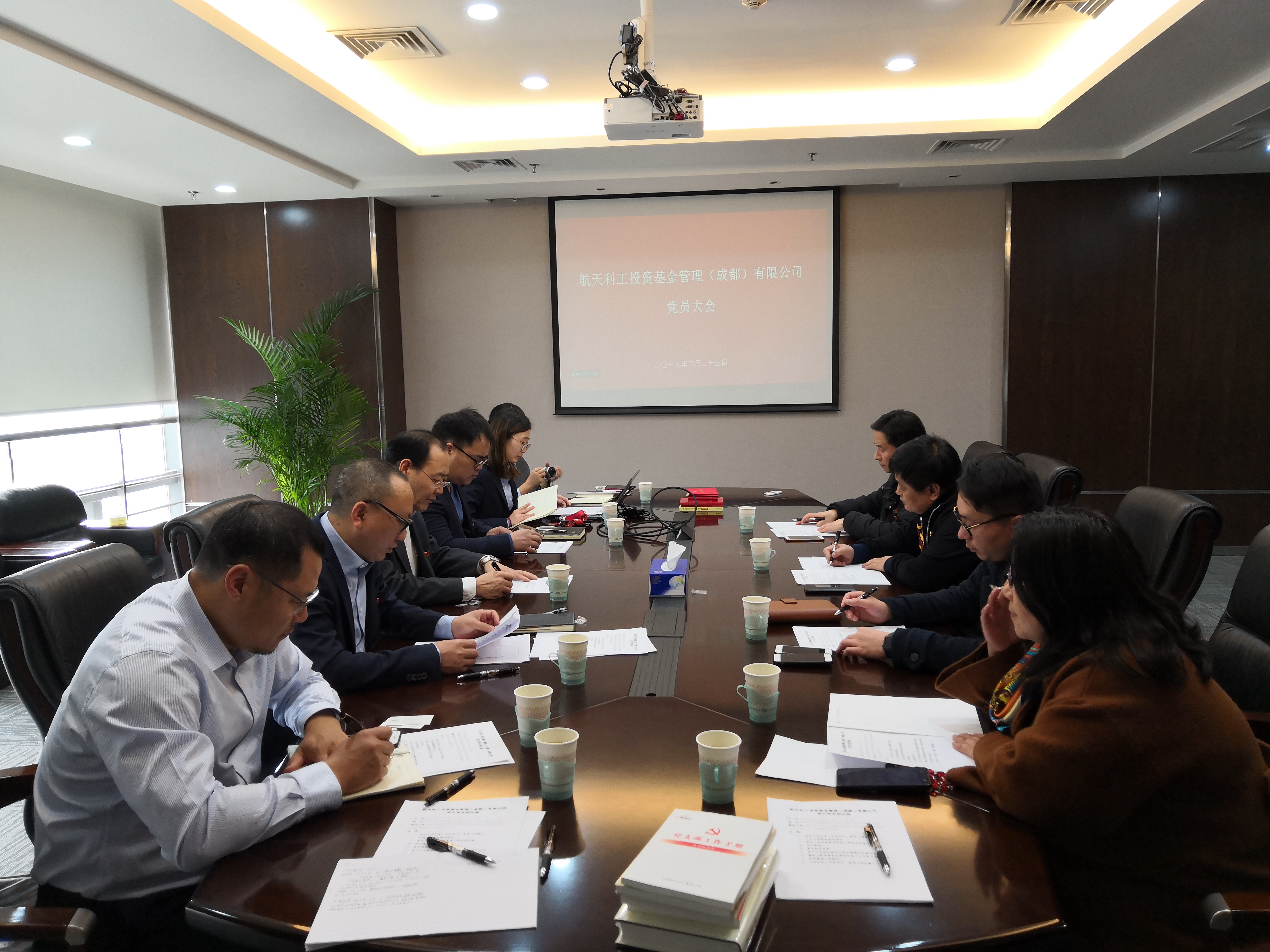 2月25日,航天科工投资基金管理(成都)有限公司(以下简称成都基金公司)召开党支部成立大会,资产公司党委副书记、副总经理、工会主席卢克南,成都市武侯区玉林街道黉门街社区党委书记申民辉、社区主任朱九林、党委副书记殷江,玉林街道黉门街社区新领航党支部书记丁齐参加会议,成都基金公司总经理马加暾列席会议。会议由成都基金公司副总经理付强主持。