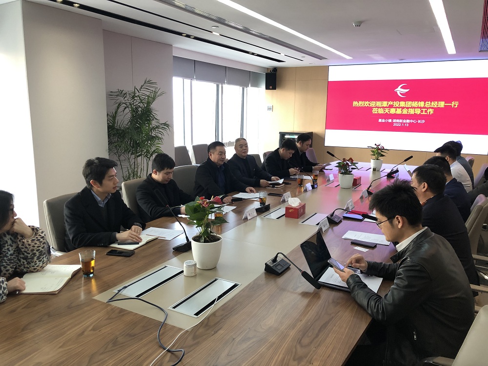 1月13日下午,湘潭市政协副主席、湘潭产投集团总经理杨锋一行到访湖南天惠投资基金管理有限公司进行交流,公司总经理宋道学主持座谈会。湘潭产投集团副总经理刘红军,湘潭产投基金公司总经理董一飞等相关陪同人员,天惠基金公司副总经理廖丰湘、杨虹,综合部、投资部相关人员参加座谈。