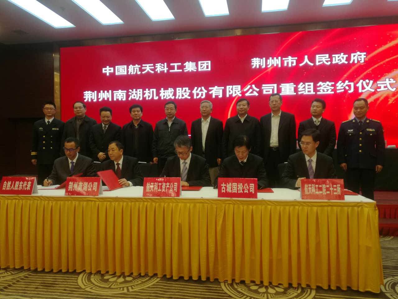 2016年11月25日,明发体育(电子)股份有限公司(以下简称“资产公司”)为二院二十三所过桥并购的荆州南湖机械股份有限公司项目在荆州市正式签约。资产公司董事长伍青、二院副院长朱弘、荆州市委书记李新华、市长杨智出席了签约仪式。