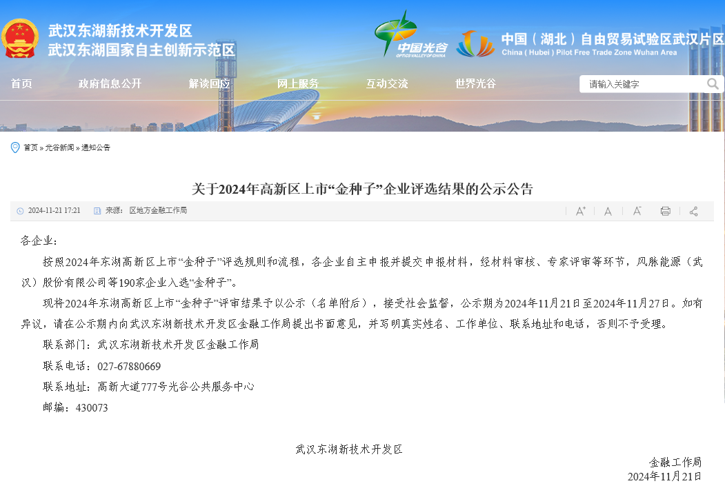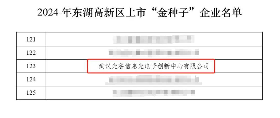 近日,武汉东湖新技术开发区发布《关于2024年高新区上市“金种子”企业评选结果的公示公告》,光电子基金所投项目武汉光谷信息光电子创新中心有限公司成功上榜。