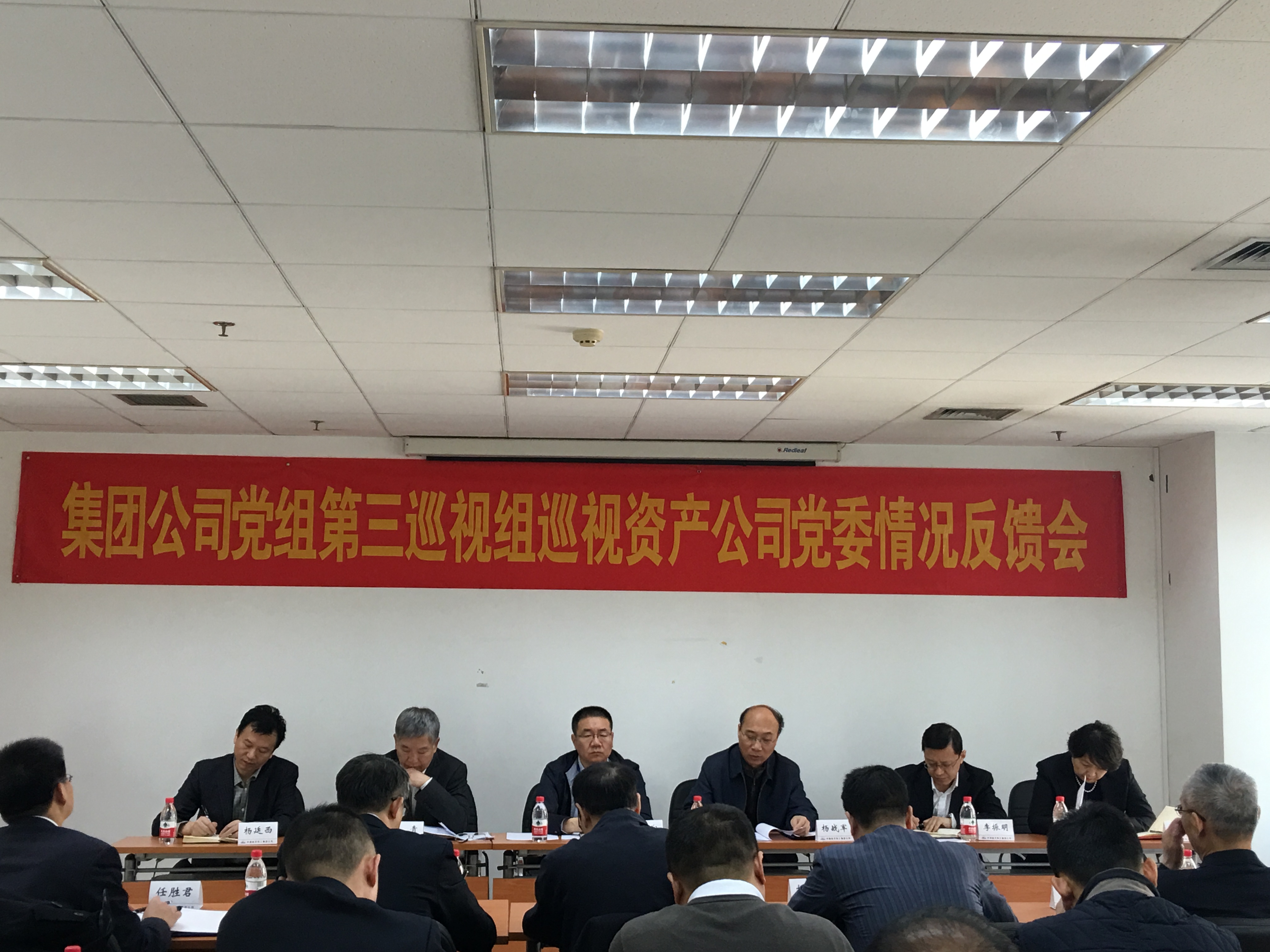 3月6日,集团公司党组第三巡视组巡视资产公司党委工作情况反馈会召开。党组第三巡视组组长杨战军宣读反馈意见,集团公司党组纪检组副组长、纪检监察部部长、党组巡视办主任刘翔作重要讲话,资产公司党委书记、董事长伍青主持会议并作表态发言。
