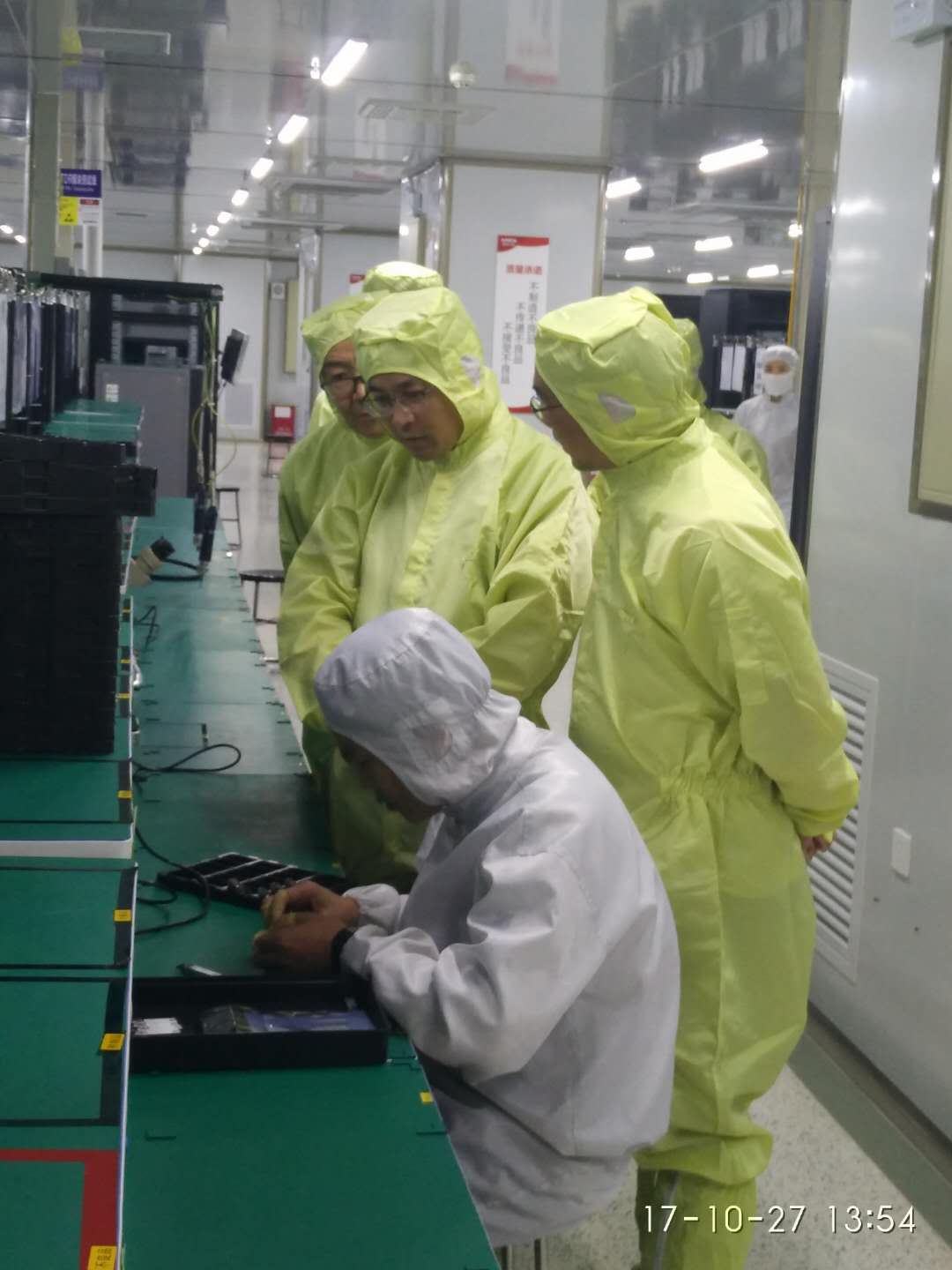 在亚派光电公司坪山基地,高辉文总经理一行首先来到生产一线,参观了新投入运行的生产车间,详细了解有关产品研发、工艺流程和安全生产等情况,看望慰问了奋战在一线的干部员工。