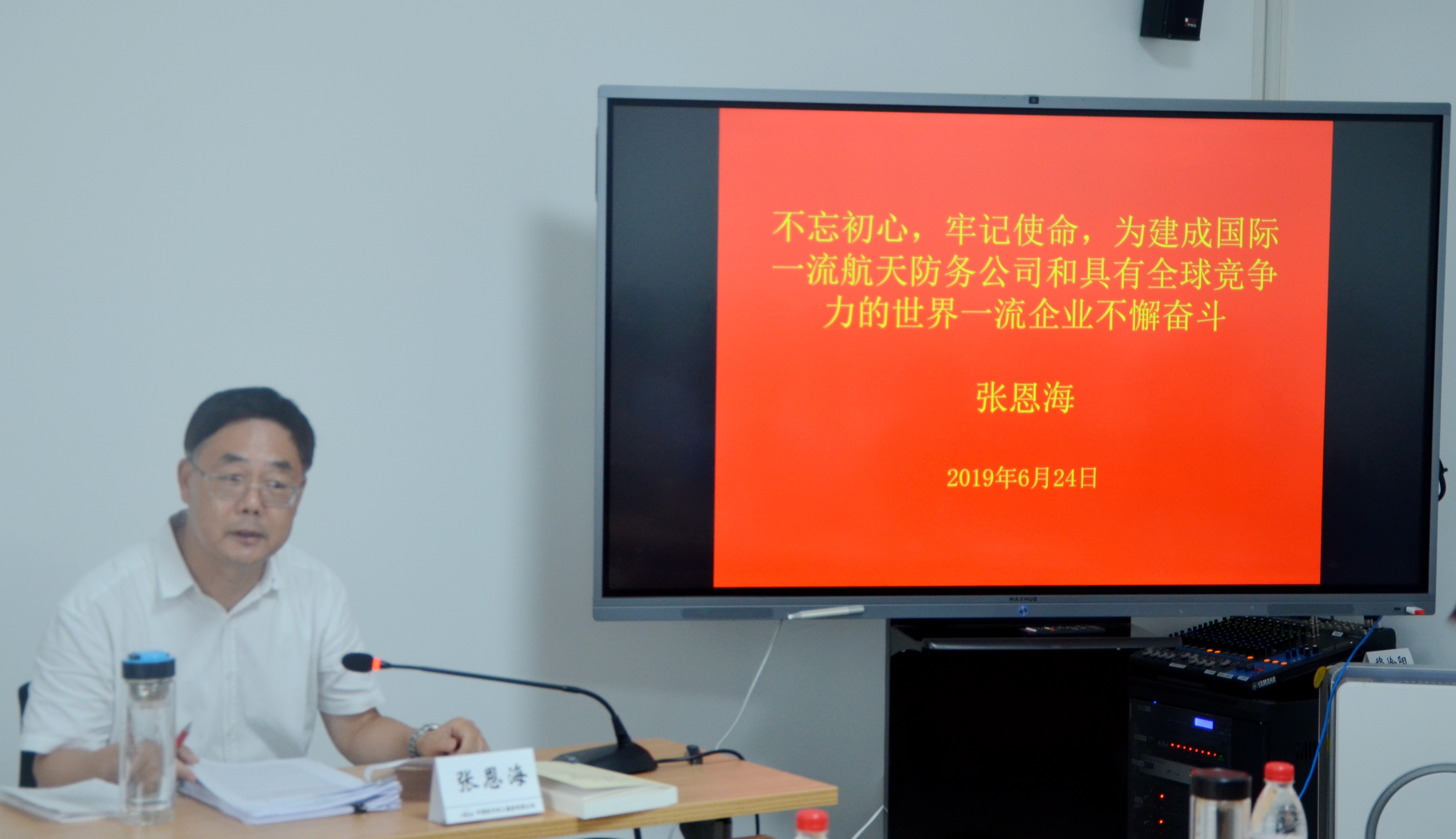 张恩海结合前期调研和学习体会,以《不忘初心,牢记使命,为建成国际一流航天防务公司和具有全球竞争力的世界一流企业不懈奋斗》为题讲授了党课,他以红船精神、井冈山精神、长征精神、抗战精神、延安精神、西柏坡精神、北大荒精神、大庆精神、航天精神、抗洪精神、抗击非典精神、奥运精神以及雷锋精神、焦裕禄精神阐述了革命精神的传承与发扬,并从联合国、世界银行、亚投行等国际性组织的发展演变和运行规则研判当前我国面临的国际局势,分析了发展航天事业、建设航天强国对提升我国综合国力,构建有利于中国发展的国际格局的重要意义。