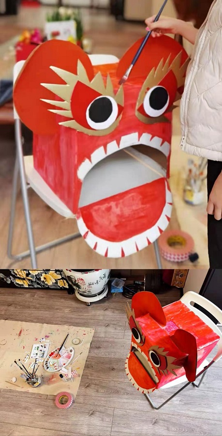 难以外出见得这一充满年味儿的传统迎春仪式,故集思广益,个性创作。手工涂鸦粘制,可盛装大小红包, 亦可做竺鼠游乐场。文武兼备,金镀眼睛银帖齿,古意驱妖镇邪,保佑人畜平安。 本是山野猛兽,今却摇身一变,化作红红火火的可爱迷你狮子头。这充满年味儿的家中一景,不仅吸引着晚辈们的新奇玩乐之意,也衬托着长辈们对新年传统的崇敬与追思。