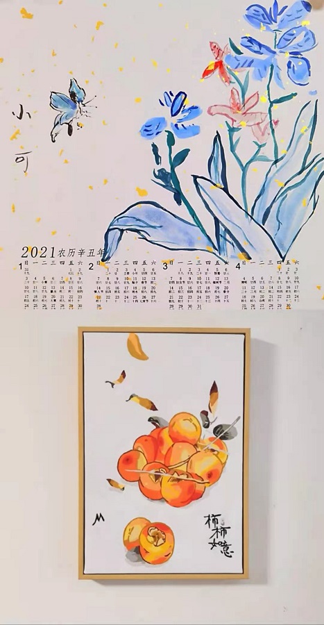 赤青交错,蝴蝶翩飞,金穗飘洒,春日暖阳下盛开的花枝,即是一直以来我对美好事物的认知体现。赤色的奔放、沉稳与青色的低调、沉闷迸发强烈对比,实又相得益彰。将此愿景泼墨于挂历之上,悬置在家中显眼处,在新的一年里,时刻体味这新春伊始对自己和家人的美好期许与祝福。 同时也不断提醒自己,先物而动,先事而应,对工作和生活坚持不懈、积极乐观, 终将破茧化蝶。