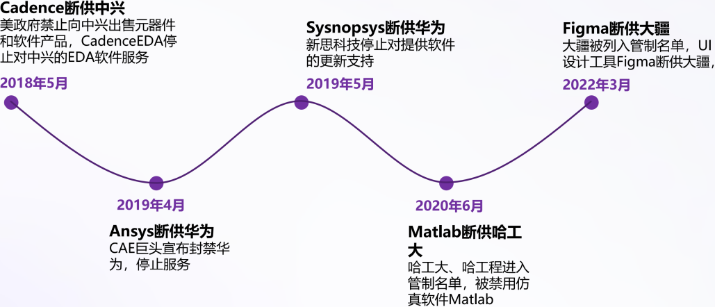 十四五期间,随着国产化浪潮的到来,工业软件又重回视野,得到了国家政策大力支持。但由于贸易局势的不稳定,2018年以来,我国经历了数次被“卡脖子”的事件。在经历了2018年以来的"卡脖子"风波之后,以工业软件、基础软件为代表的ICT核心技术的自主可控以一种肩负时代使命的姿态再次被关注。