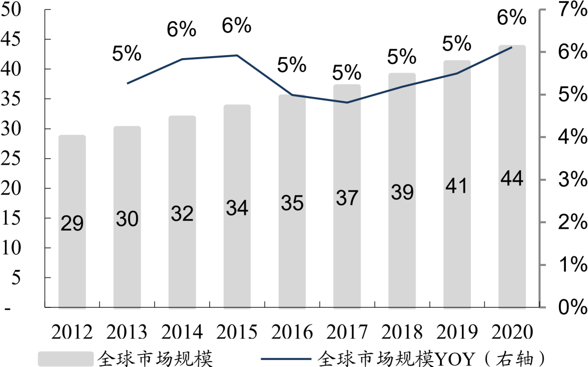 目前,全球工业软件产业已形成较为稳定的市场格局,产业规模稳定增长。2020年全球产业规模估计为4,358亿美元,2012-2020年五年复合增长率约为5.45%。