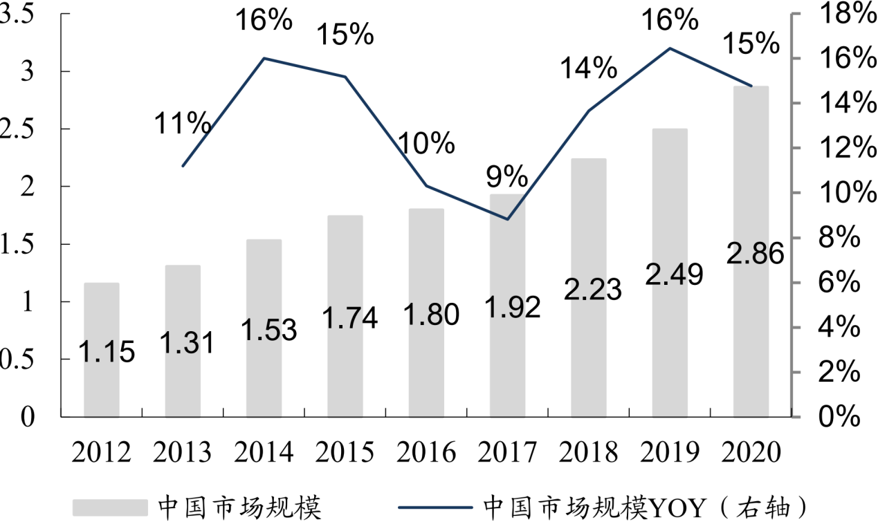 近年来,我国工业软件市场发展较快,国内供应商竞争力有所提升,自主可控的工业软件产品不断涌现,产业规模增速明显高于全球平均水平。2020年我国工业软件产业规模估计为1,974亿元,2012-2020年五年复合增长率约为12.8%[ 数据来源:东吴证券计算机行业深度报告《执工业软件之剑,走制造强国之路》]。