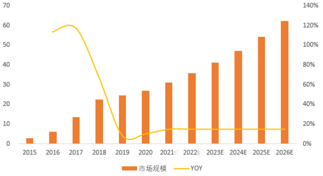 图表22 2015-2026年中国超快激光行业市场规模(亿元)