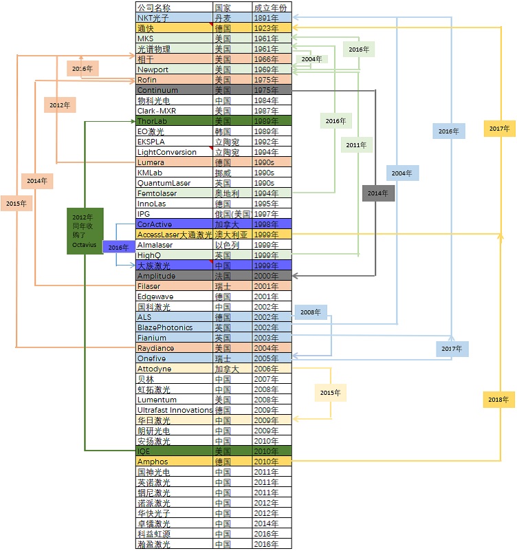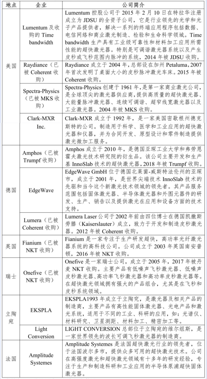 1、国外:MKS、NKT、相干、通快等公司占据全球市场主要份额