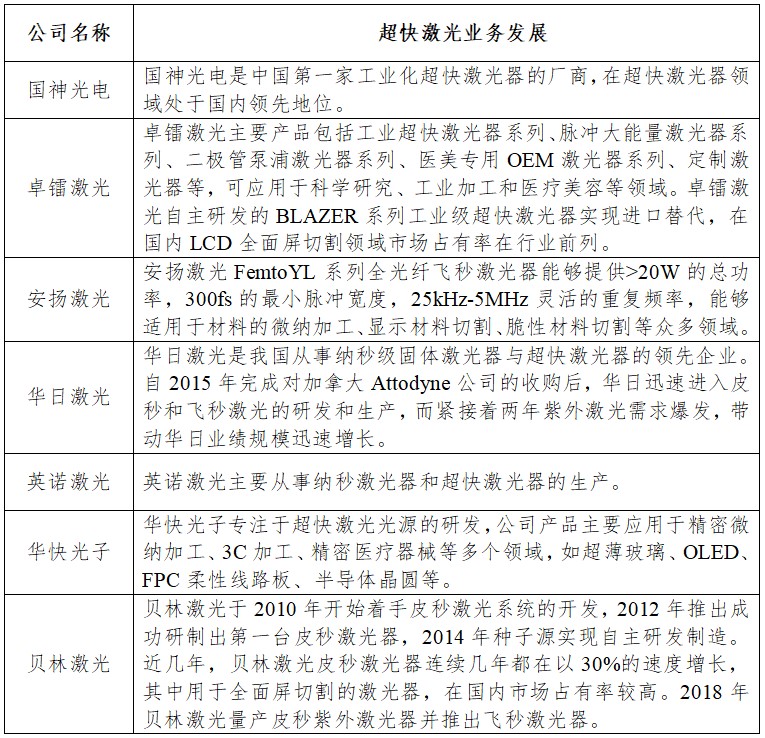 图表25国内主要的超快激光企业概览