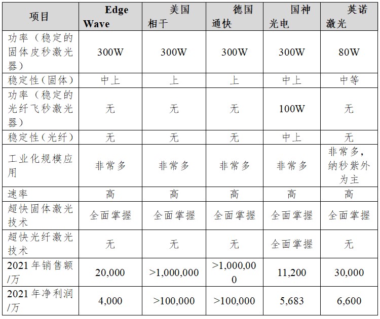 总体来看,根据与超快激光器领域的相关企业进行横向对比,国神公司在技术水平、产品稳定性、经营指标以及与相关方的协同效应上均优于其他国产超快激光行业的公司,整体竞争实力较强。